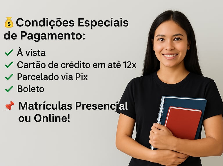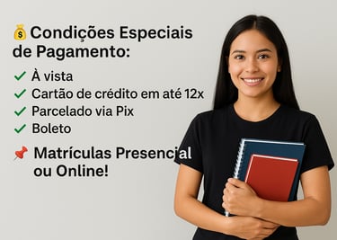Diversas formas de pagamento! Matrícula Online ou Presencial